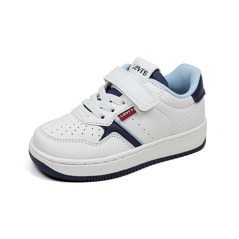 Παιδικό sneaker σε λευκό χρώμα με μπλε λεπτομέρειες και το λογότυπο της εταιρίας στο πλάι και το πίσω μέρος. Διαθέτει υφασμάτινη επένδυση εσωτερικά, velcro και ελαστικά κορδόνια για εύκολη εφαρμογή.