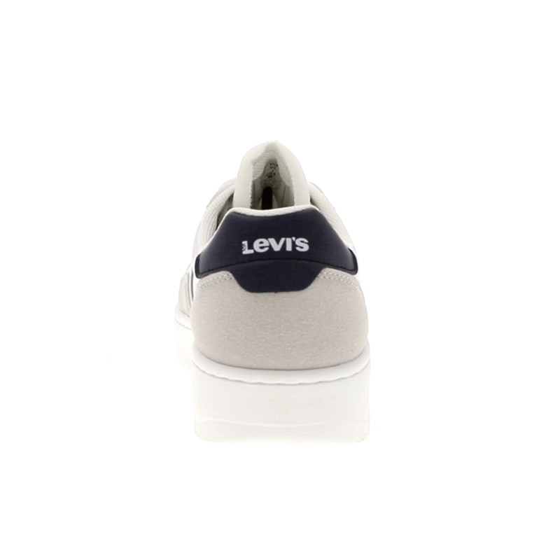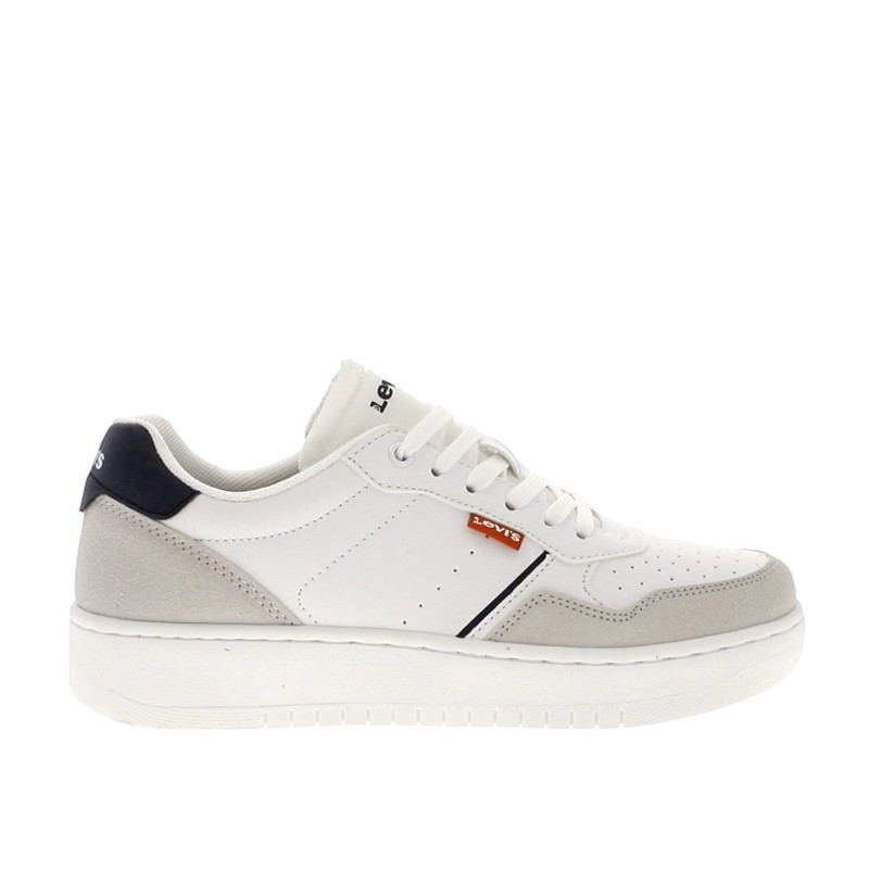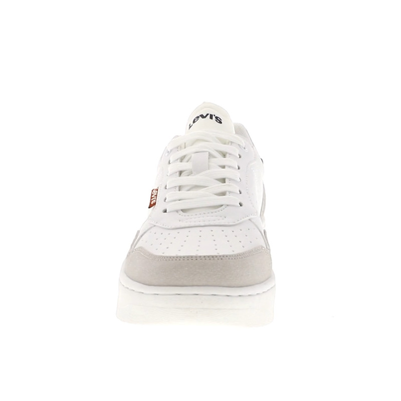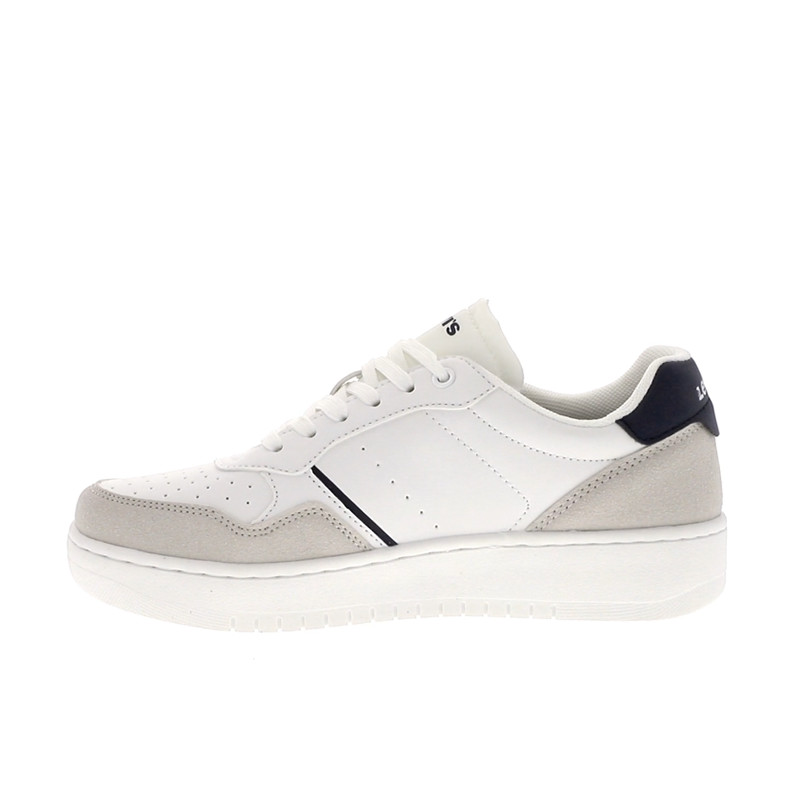 Παιδικό sneaker Levi’s σε λευκό χρώμα με μπλε και γκρι λεπτομέρειες και το λογότυπο της εταιρίας στο πλάι και το πίσω μέρος. Διαθέτει υφασμάτινη επένδυση εσωτερικά και υφασμάτινα κορδόνια.