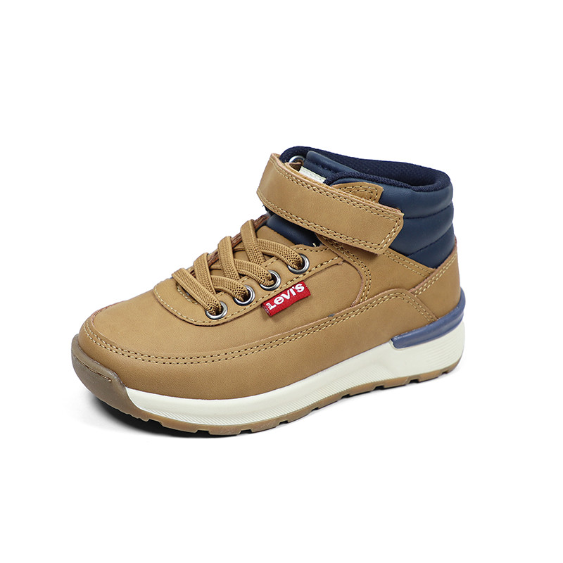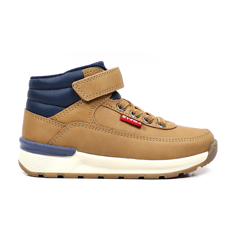 Παιδικό μποτάκι Levi’s σε ταμπά χρώμα με μπλε λεπτομέρειες. Διαθέτει υφασμάτινη επένδυση εσωτερικά, ελαστικά κορδόνια και velcro για εύκολη εφαρμογή.