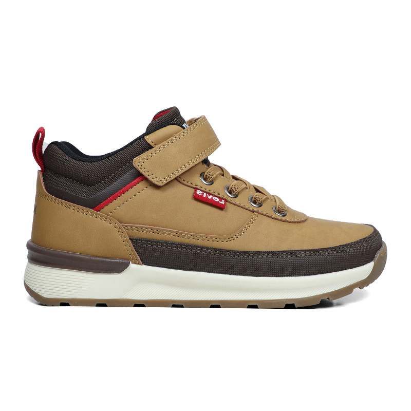 Παιδικό μποτάκι Levi’s σε κίτρινο χρώμα με το λογότυπο της εταιρίας στο πλάι. Διαθέτει υφασμάτινη επένδυση εσωτερικά και υφασμάτινα κορδόνια.