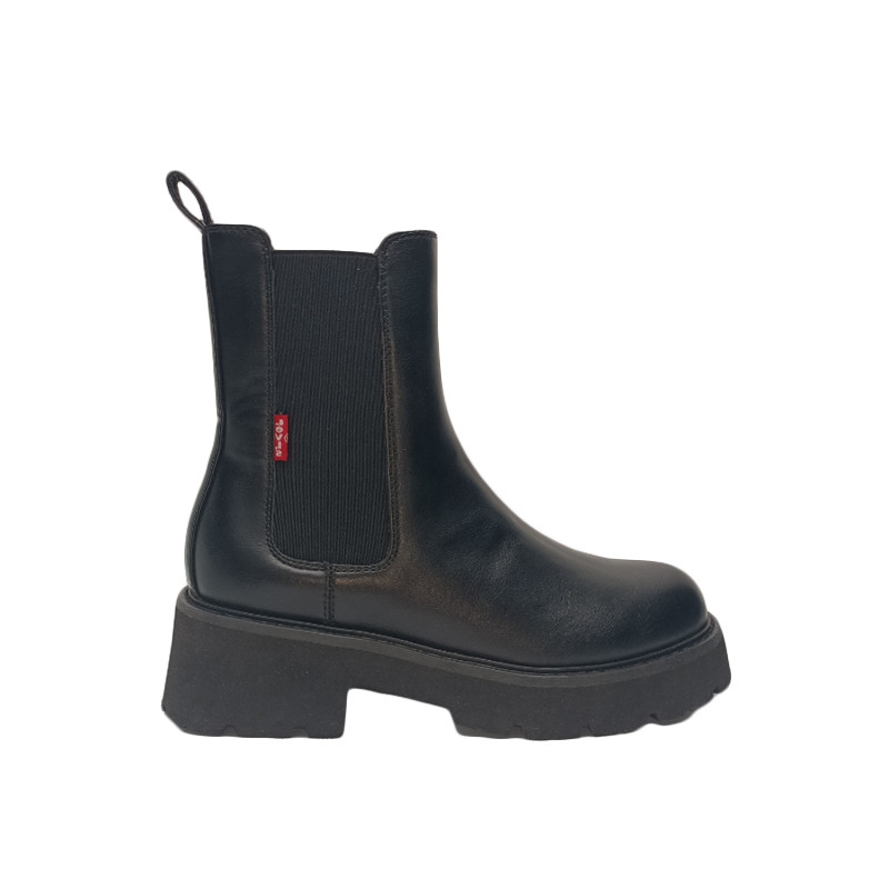 Μποτάκι Levi’s σε μαύρο χρώμα με το λογότυπο της εταιρίας στο πίσω μέρος και ματ τελείωμα. Διαθέτει λάστιχο για εύκολη εφαρμογή, υφασμάτινη επένδυση εσωτερικά και τρακτερωτή σόλα με χαμηλό τακούνι.