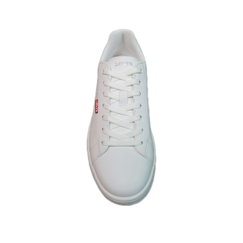 Sneaker Levi’s σε λευκό χρώμα με το λογότυπο της εταιρίας στο πλάι και το πίσω μέρος. Διαθέτει υφασμάτινη επένδυση εσωτερικά και υφασμάτινα κορδόνια.