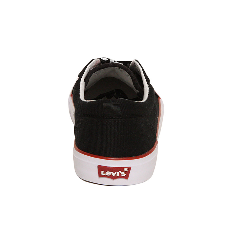 Παιδικό πάνινο παπούτσι Levi’s σε μαύρο χρώμα με το λογότυπο της εταιρίας τυπωμένο στη σόλα. Διαθέτει σατέν κορδόνια και υφασμάτινη επένδυση εσωτερικά.