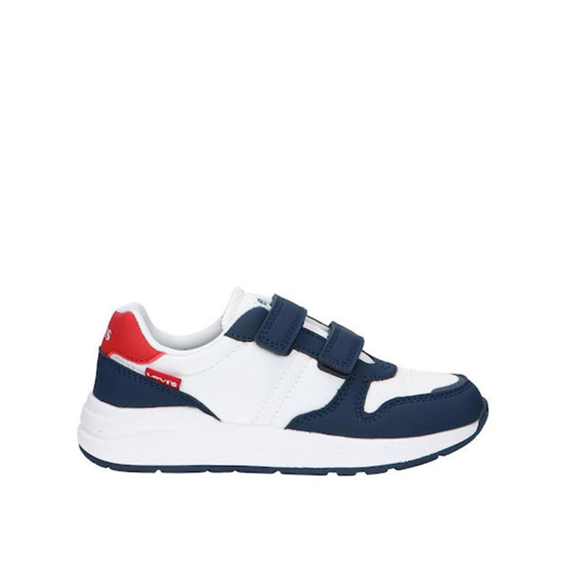 Παιδικό αθλητικό παπούτσι Levi’s σε λευκό χρώμα με το λογότυπο της εταιρίας στο πίσω μέρος. Με υφασμάτινη επένδυση εσωτερικά και ελαφριά αντιολισθητική σόλα. Διαθέτει διπλό velcro για εύκολη εφαρμογή.