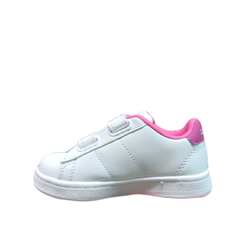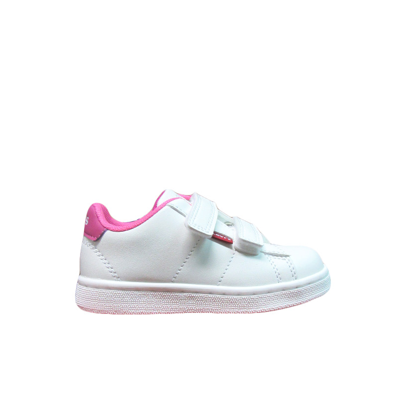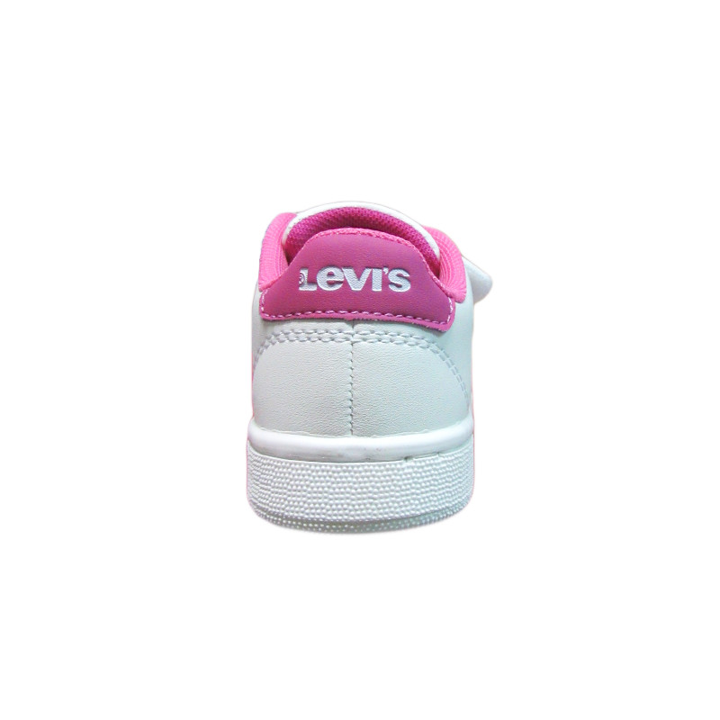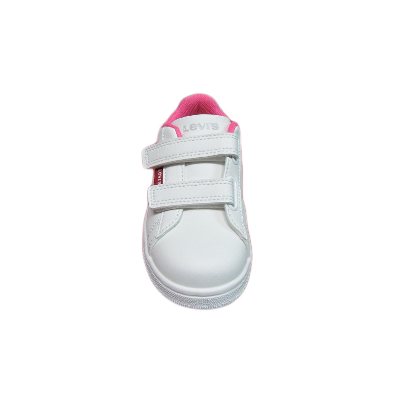 Παιδικό sneaker Levi’s σε λευκό χρώμα με φούξια λεπτομέρεια και το λογότυπο της εταιρίας στο πλάι και το πίσω μέρος. Με υφασμάτινη επένδυση εσωτερικά και ελαφριά σόλα. Διαθέτει διπλό velcro για εύκολη εφαρμογή.