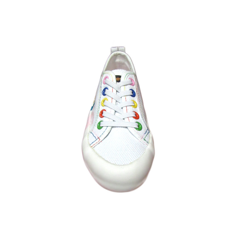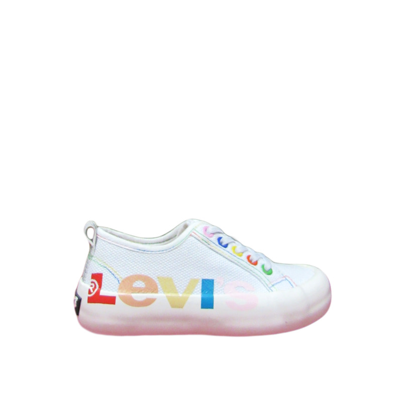 Παιδικό πάνινο παπούτσι Levi’s σε λευκό χρώμα με το λογότυπο της εταιρίας τυπωμένο στο πλάι. Διαθέτει υφασμάτινη επένδυση εσωτερικά και υφασμάτινα κορδόνια.