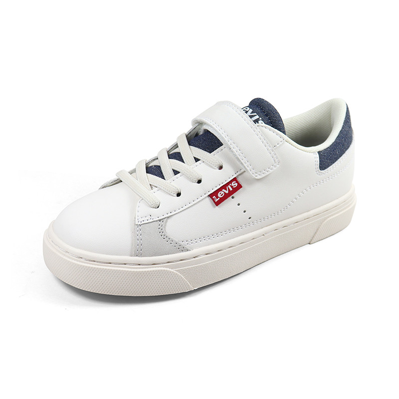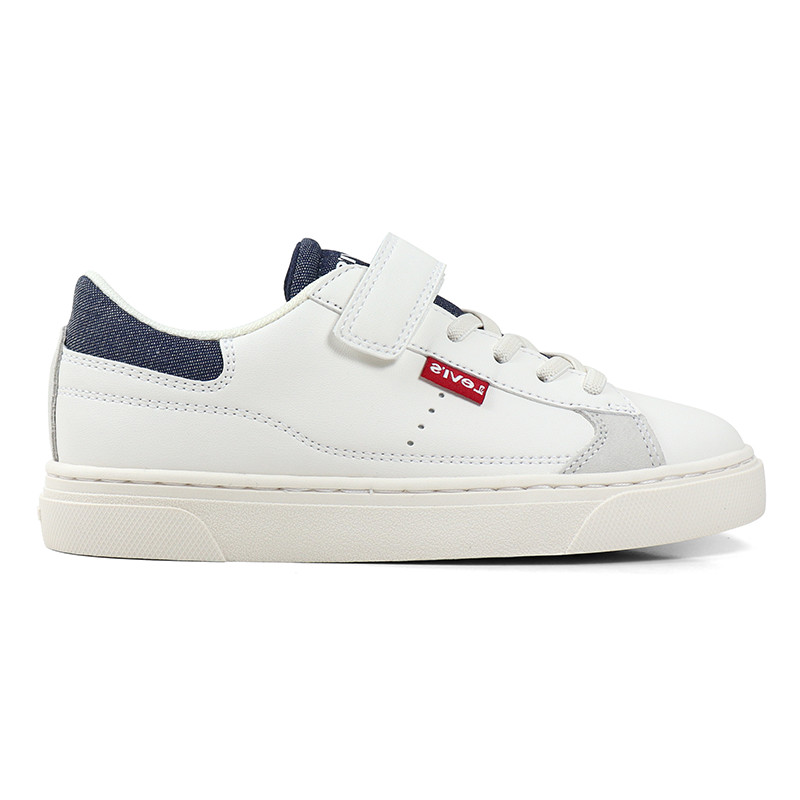 Παιδικό sneaker Levi’s σε λευκό χρώμα με μπλε denim λεπτομέρεια και το λογότυπο της εταιρίας στο πλάι. Κατασκευασμένο από υψηλής ποιότητας υλικά, με κομψό design και ελαφριά σόλα. Διαθέτει υφασμάτινη επένδυση εσωτερικά και υφασμάτινα κορδόνια.