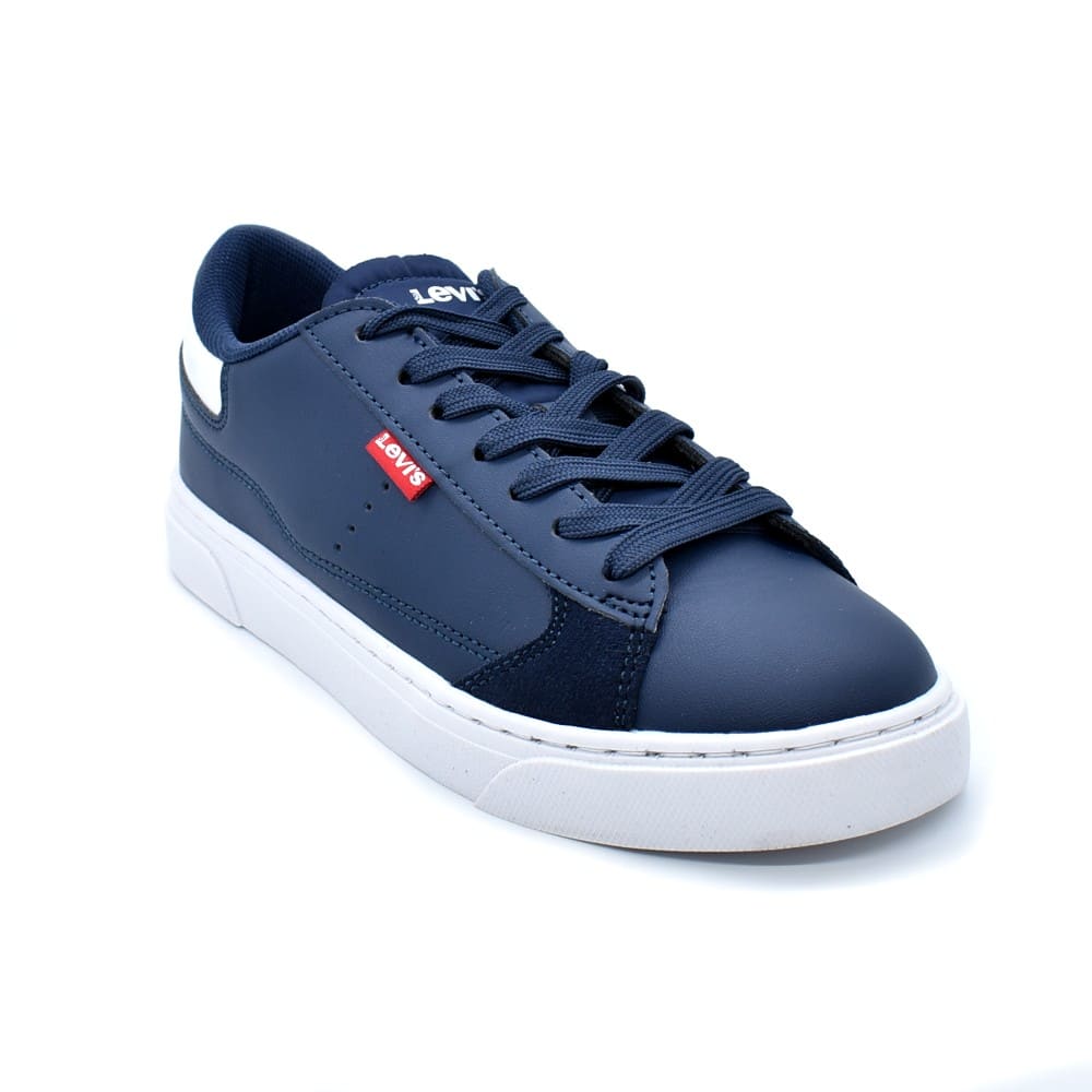 Παιδικό sneaker Levi’s σε μπλε χρώμα με λευκή λεπτομέρεια στο πίσω μέρος και το λογότυπο της εταιρίας στο πλάι. Κατασκευασμένο από υψηλής ποιότητας υλικά με ελαφριά σόλα. Διαθέτει υφασμάτινη επένδυση εσωτερικά και υφασμάτινα κορδόνια.