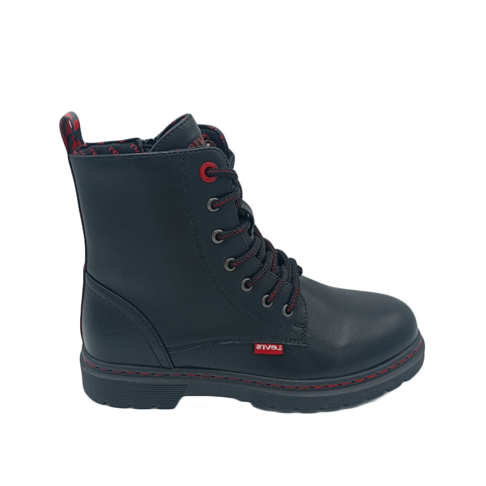 Παιδικό αρβυλάκι Levi’s σε μαύρο χρώμα με το λογότυπο της εταιρίας στο πίσω μέρος. Διαθέτει υφασμάτινη επένδυση εσωτερικά, κλείσιμο με κορδόνια και φερμουάρ και ελαφριά αντιολισθητική σόλα με χαμηλό τακούνι.
