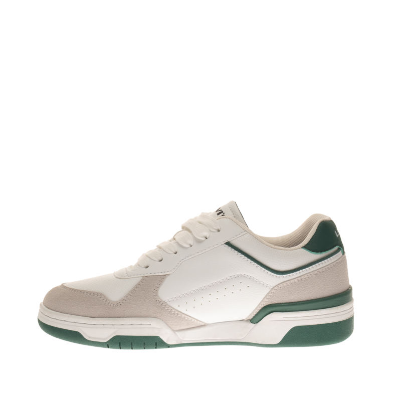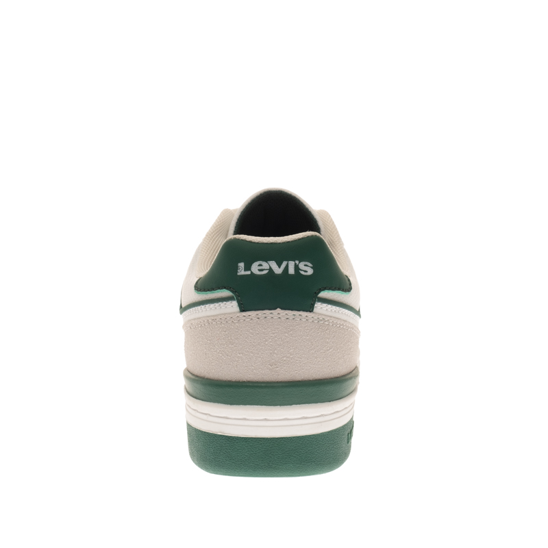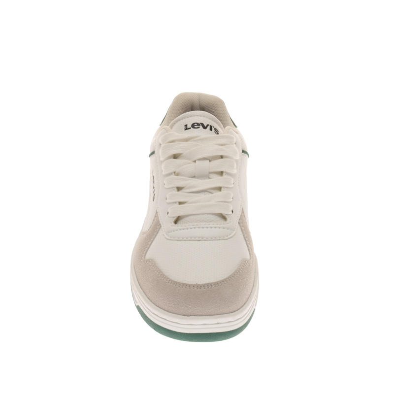 Παιδικό sneaker Levi’s σε λευκό χρώμα με πράσινες λεπτομέρειες και το λογότυπο της εταιρίας στο πλάι και το πίσω μέρος. Διαθέτει υφασμάτινη επένδυση εσωτερικά και υφασμάτινα κορδόνια.