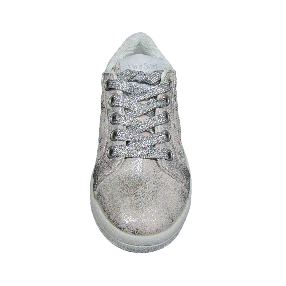 Παιδικό sneaker Lulu σε ροζ χρώμα με ασημί λεπτομέρειες. Διαθέτει υφασμάτινη επένδυση εσωτερικά και υφασμάτινα κορδόνια.