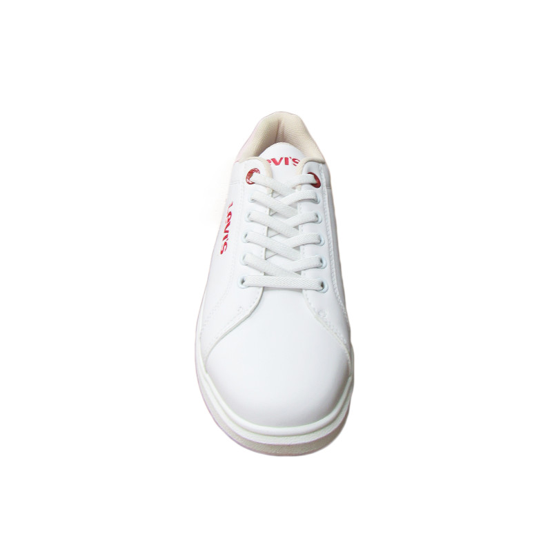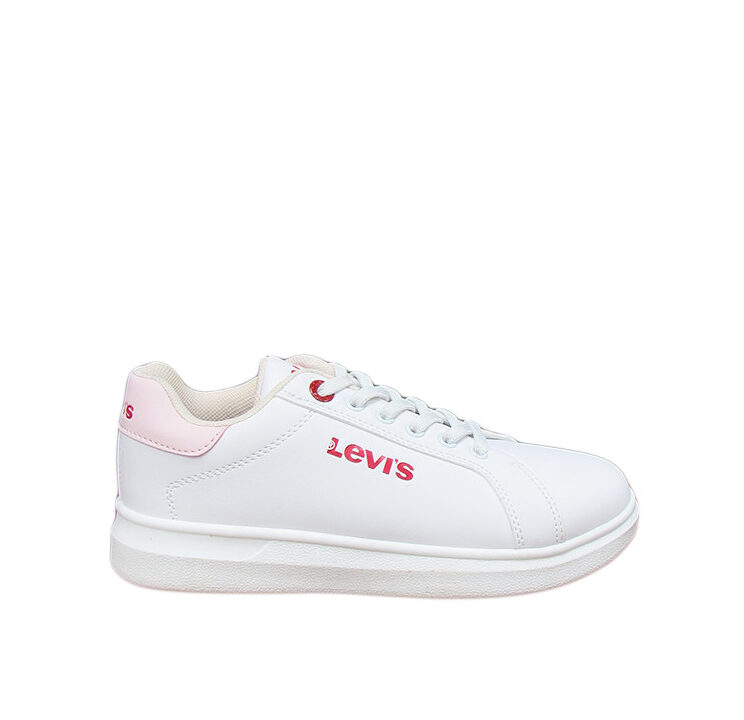 Παιδικό sneaker Levi’s σε λευκό χρώμα με ροζ λεπτομέρειες και το λογότυπο της εταιρίας στο πλάι και το πίσω μέρος. Διαθέτει υφασμάτινη επένδυση εσωτερικά και υφασμάτινα κορδόνια.