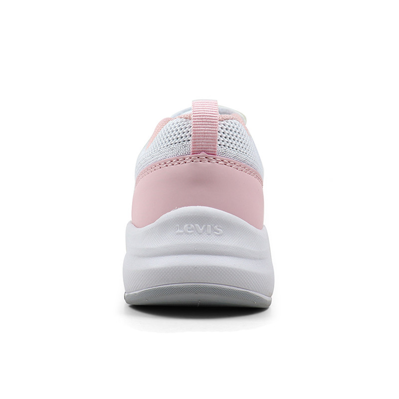 Παιδικό αθλητικό Levi’s σε λευκό χρώμα με ροζ λεπτομέρεια και το λογότυπο της εταιρίας στο πλάι και το πίσω μέρος. Κατασκευασμένο από υψηλής ποιότητας υλικά, με κομψό design και ελαφριά σόλα. Διαθέτει υφασμάτινη επένδυση εσωτερικά και ελαστικά κορδόνια.