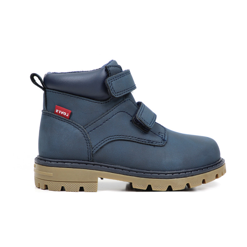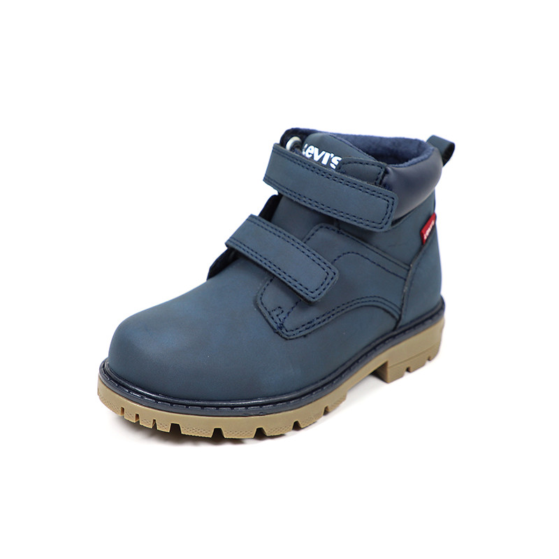 Παιδικό αρβυλάκι Levi’s σε μπλε χρώμα. Κατασκευασμένο εξωτερικά από δέρμα nubuck, έχει υφασμάτινη επένδυση εσωτερικά. Διαθέτει κλείσιμο με διπλό velcro για εύκολη εφαρμογή και τρακτερωτή αντιολισθητική σόλα.