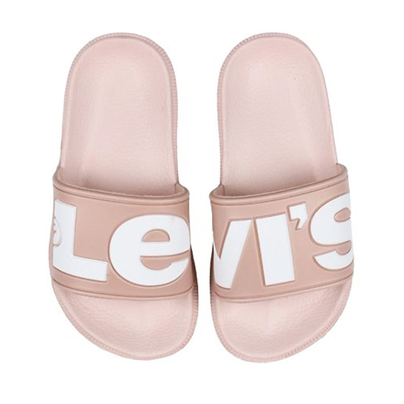 Παιδική σαγιονάρα Levi’s σε ροζ χρώμα με το λογότυπο της εταιρίας στο μπροστινό μέρος. Διαθέτει slip-on εφαρμογή και χαρίζει άνετο περπάτημα με το ανατομικό της σχήμα.