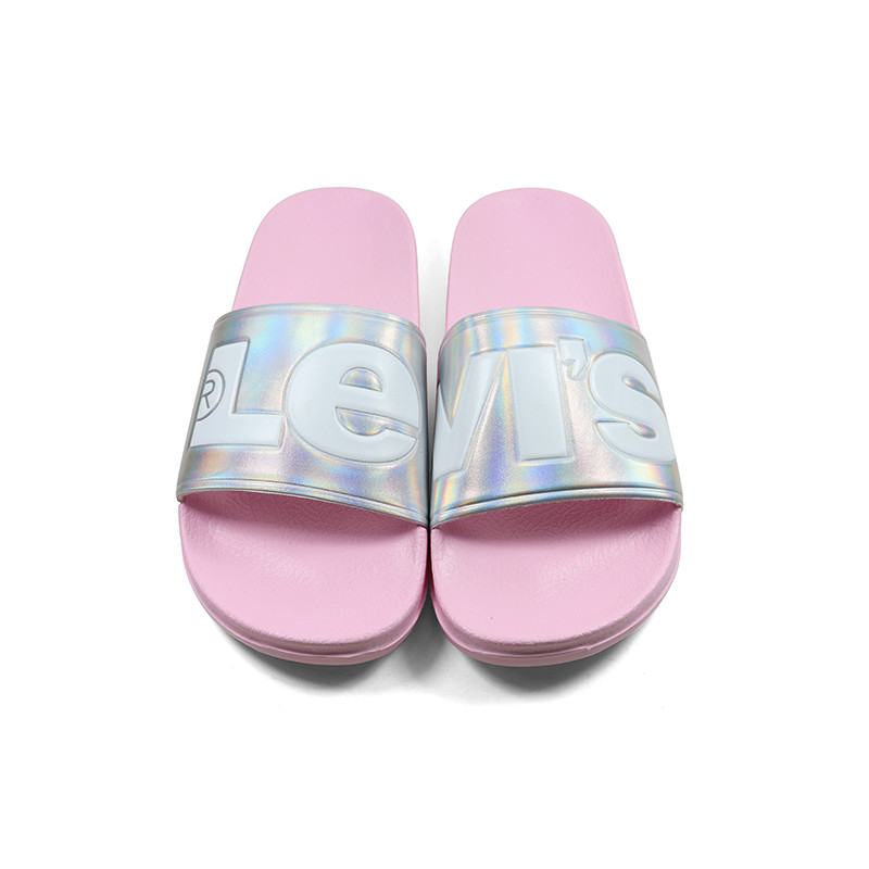 Σαγιονάρα Levi’s σε ροζ και ασημί χρώμα με το λογότυπο της εταιρίας στο μπροστινό μέρος. Διαθέτει slip-on εφαρμογή και χαρίζει άνετο περπάτημα με το ανατομικό της σχήμα.