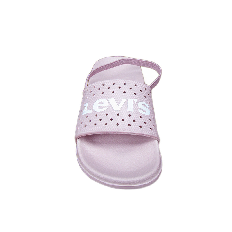 Παιδική σαγιονάρα Levi’s σε ροζ χρώμα με διάτρητη λεπτομέρεια και το λογότυπο της εταιρίας στο μπροστινό μέρος. Διαθέτει slip-on εφαρμογή και λάστιχο για να κρατάει σταθερό το πόδι και χαρίζει άνετο περπάτημα με το ανατομικό της σχήμα.