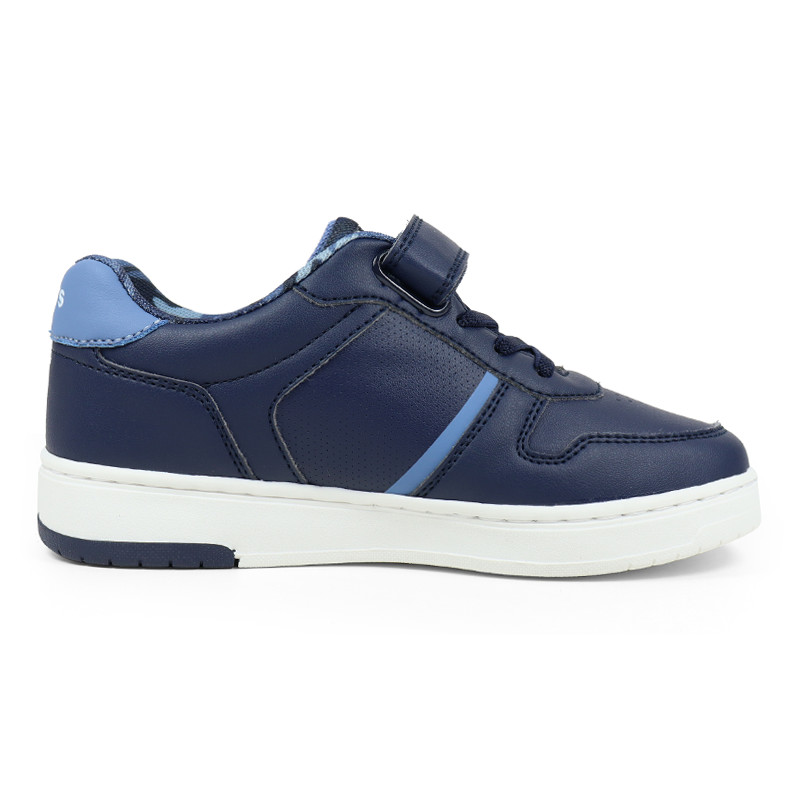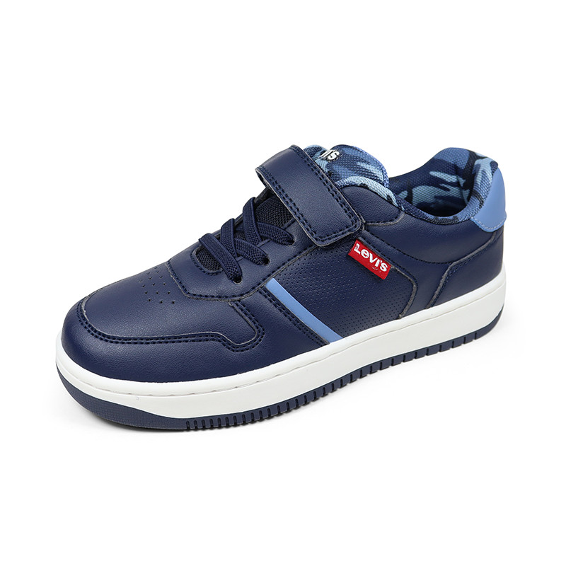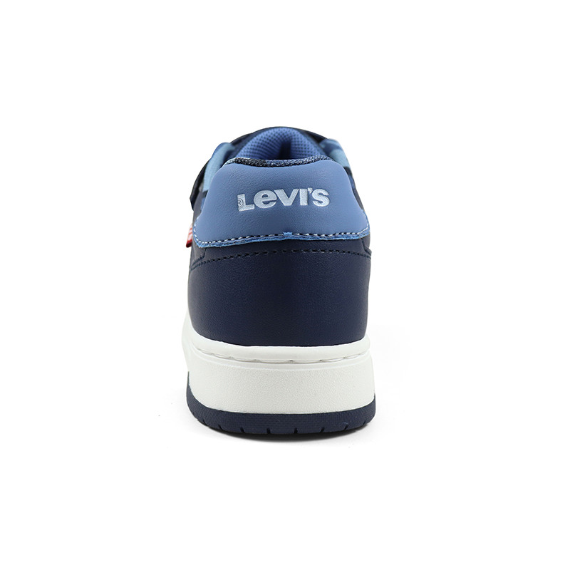 Παιδικό sneaker Levi’s σε μπλε χρώμα με μπλε λεπτομέριες και το λογότυπο της εταιρίας στο πλάι και το πίσω μέρος. Με υφασμάτινη επένδυση εσωτερικά, ελαστικά κορδόνια και velcro για εύκολη εφαρμογή.