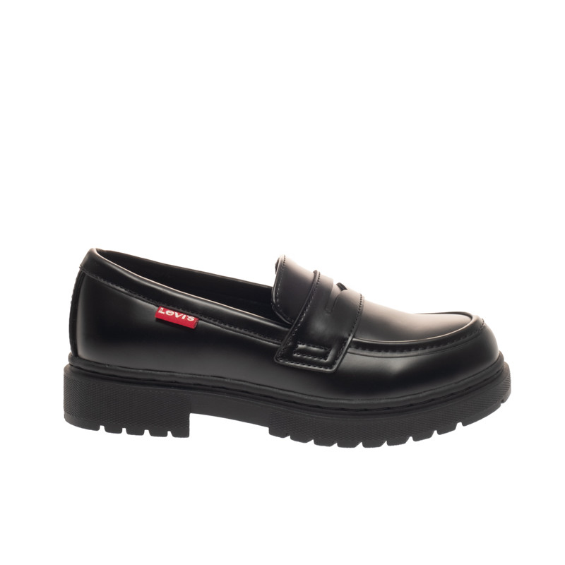 Παιδικό loafer Levi’s σε μαύρο χρώμα με το λογότυπο της εταιρίας στο πλάι. Διαθέτει υφασμάτινη επένδυση εσωτερικά και τρακτερωτή σόλα με χαμηλό τακούνι.