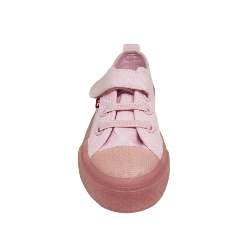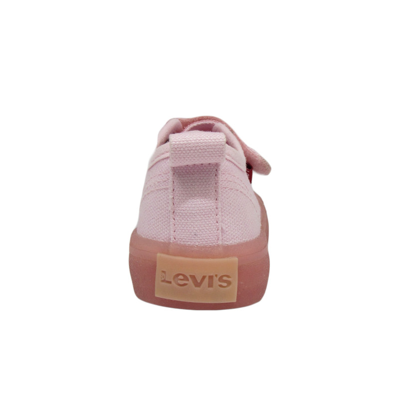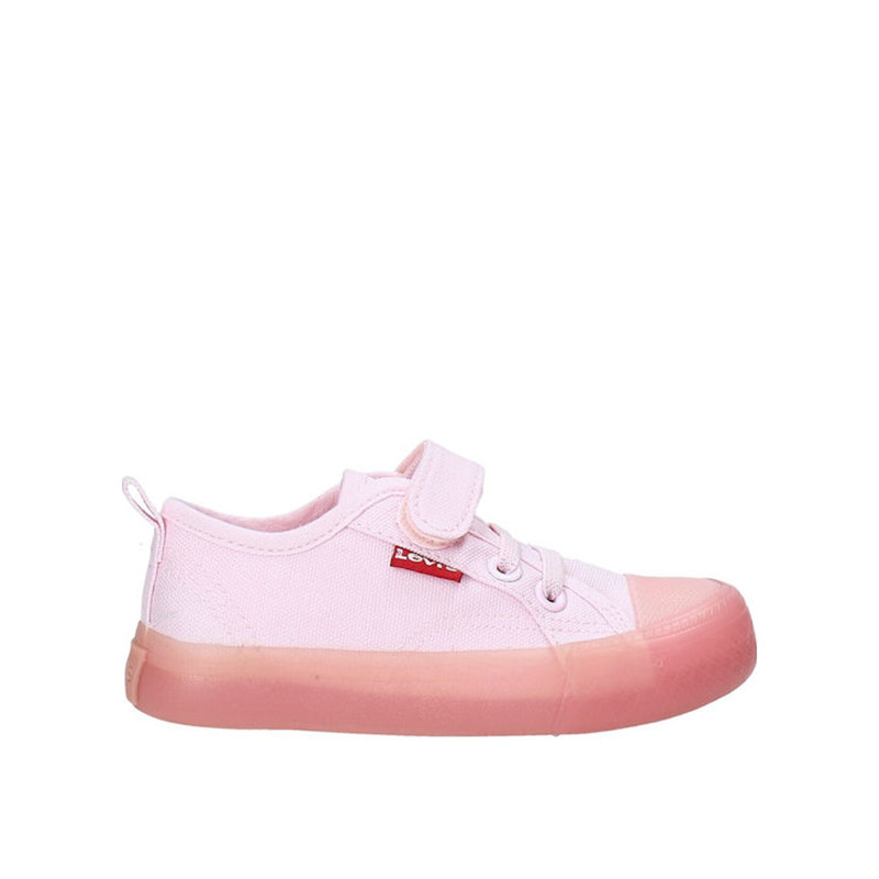 Παιδικό πάνινο παπούτσι Levi’s σε ροζ χρώμα με ροζ σόλα. Διαθέτει ελαστικά κορδόνια και velcro για εύκολη εφαρμογή.
