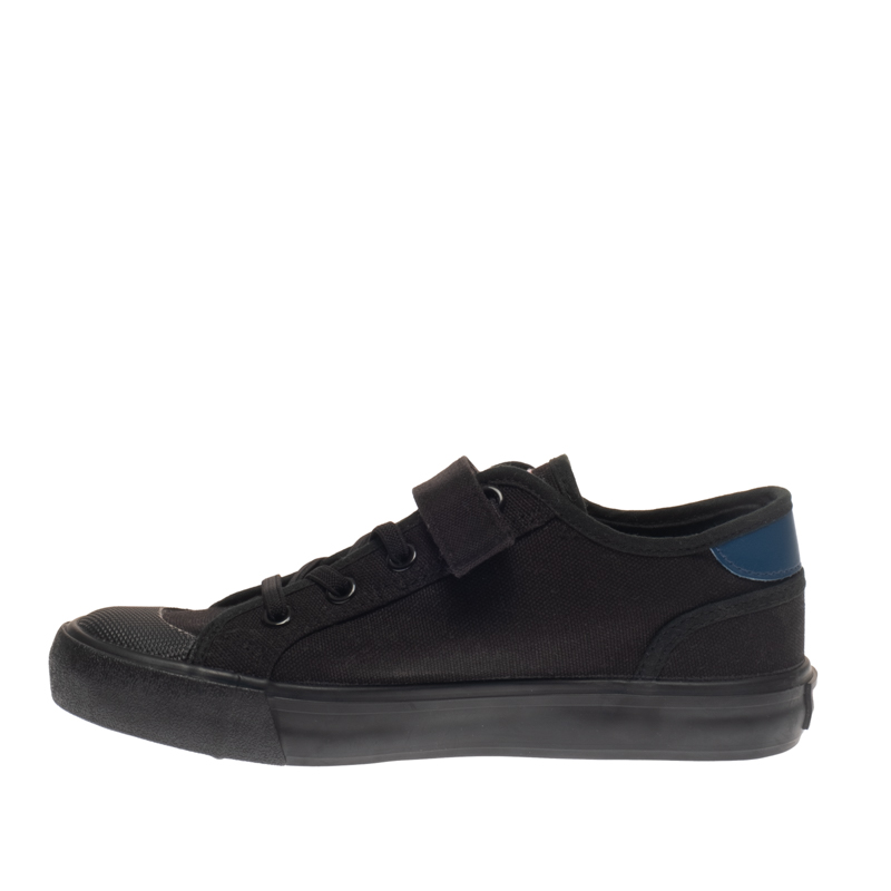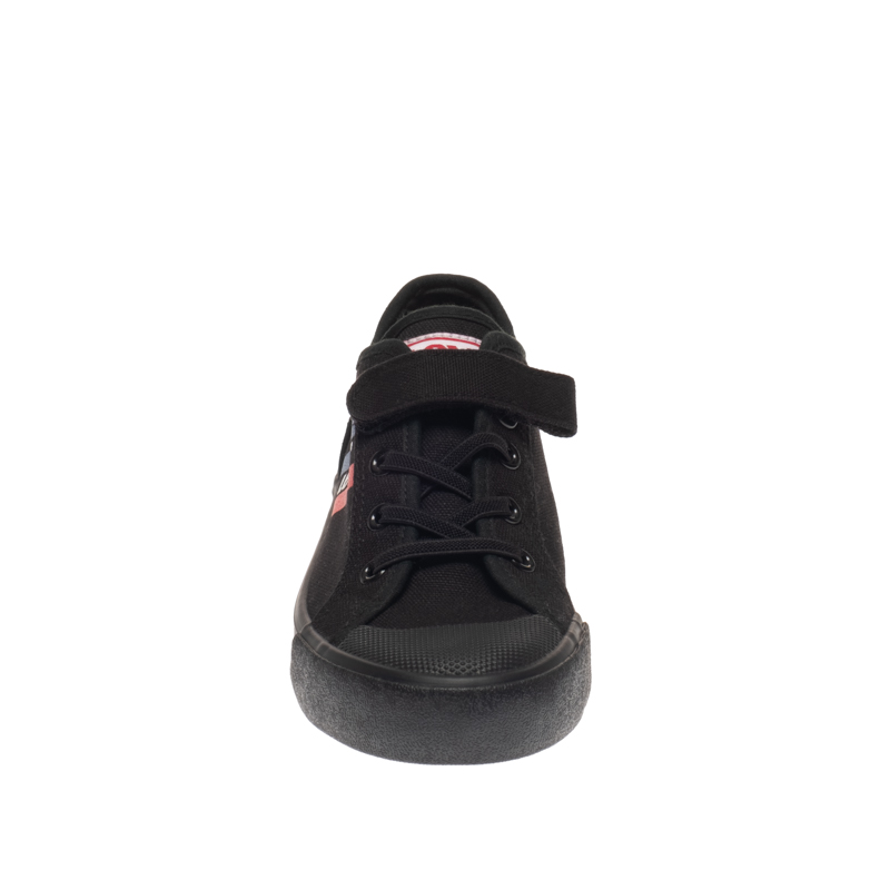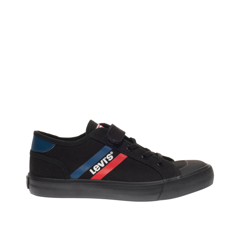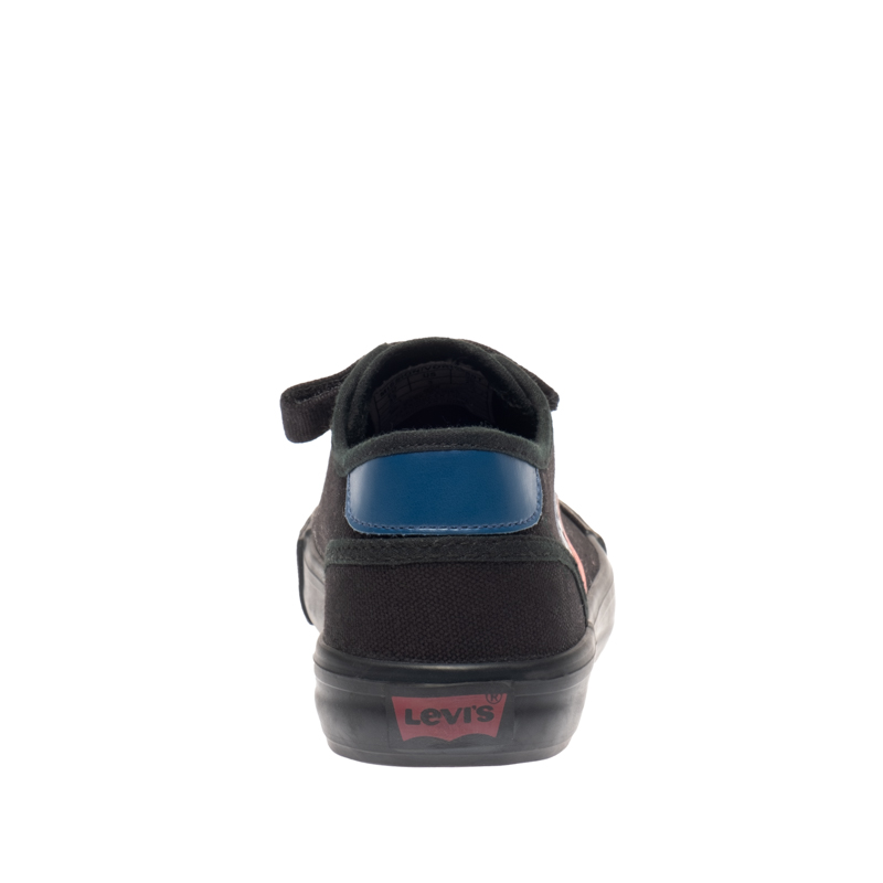 Παιδικό πάνινο παπούτσι Levi’s σε μαύρο χρώμα με το λογότυπο της εταιρίας τυπωμένο στο πλάι. Διαθέτει υφασμάτινη επένδυση εσωτερικά, ελαστικά κορδόνια και velcro για εύκολη εφαρμογή.