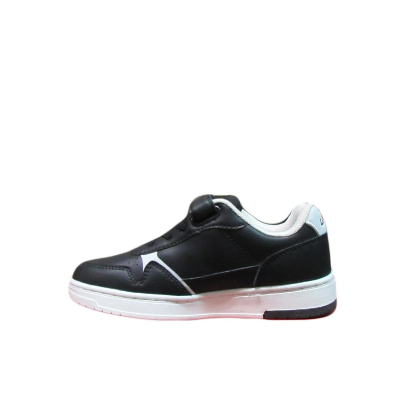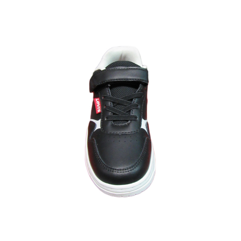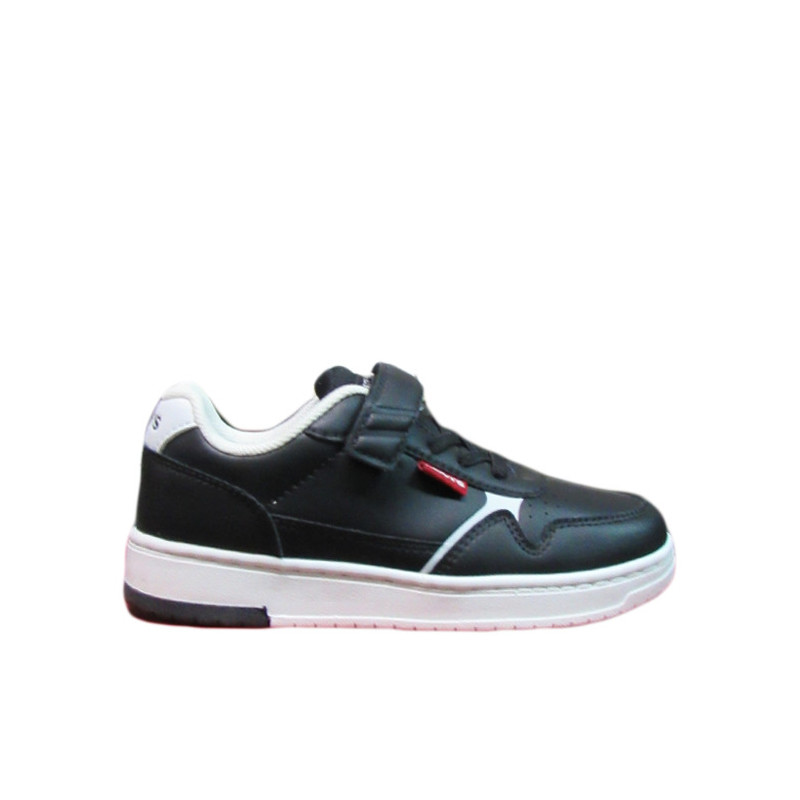 Παιδικό sneaker Levi’s σε μαύρο χρώμα με λευκές λεπτομέρειες και το λογότυπο της εταιρίας στο πλάι και το πίσω μέρος. Διαθέτει υφασμάτινη επένδυση εσωτερικά, ελαστικά κορδόνια και velcro για εύκολη εφαρμογή.