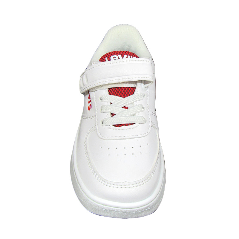 Παιδικό sneaker Levi’s σε άσπρο χρώμα με contrast λεπτομέρειες και το λογότυπο της εταιρίας στο πλάι και στο πίσω μέρος. Έχει υφασμάτινη επένδυση εσωτερικά και αντιολησθητική σόλα. Διαθέτει ελαστικά κορδόνια και velcro για εύκολη εφωαρμογή.
