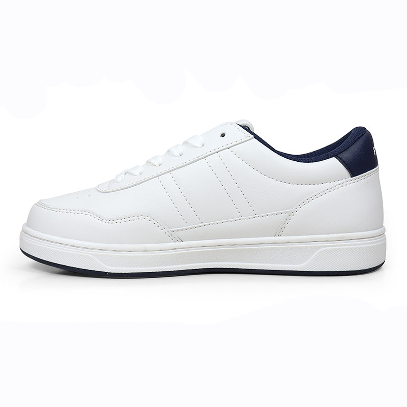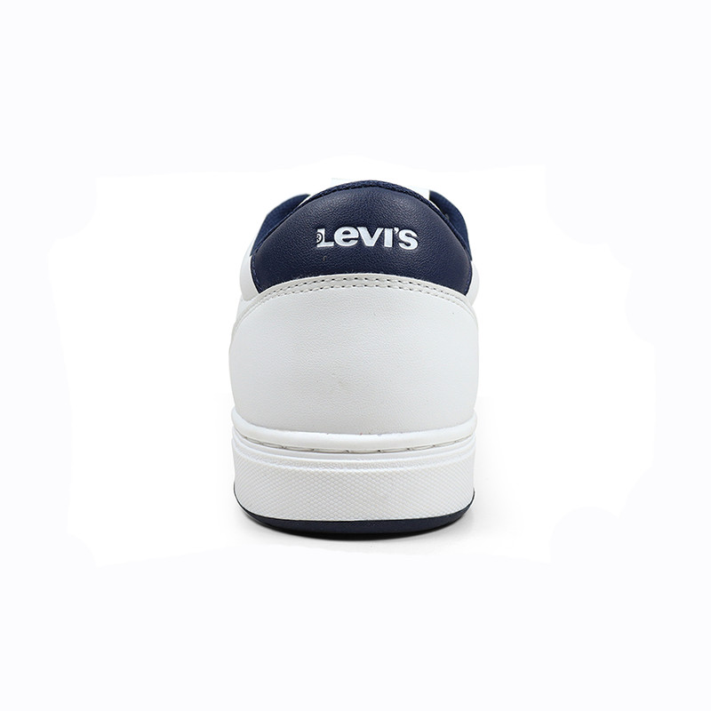 Παιδικό sneaker Levi’s σε λευκό χρώμα με μπλε λεπτομέρειες και το λογότυπο της εταιρίας στο πλάι και το πίσω μέρος. Διαθέτει υφασμάτινη επένδυση εσωτερικά και υφασμάτινα κορδόνια.