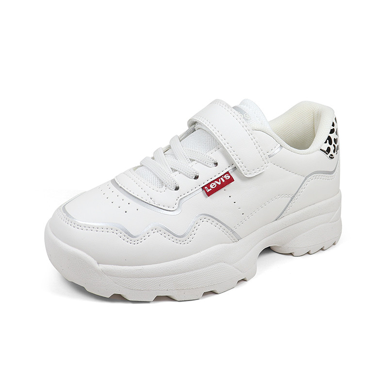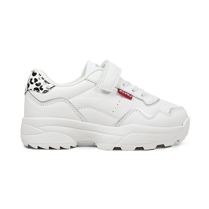 Παιδικό sneaker σε λευκό χρώμα με λεοπάρ λεπτομέρεια και το λογότυπο της εταιρίας στο πλάι. Διαθέτει υφασμάτινη επένδυση εσωτερικά, velcro και ελαστικά κορδόνια για εύκολη εφαρμογή.
