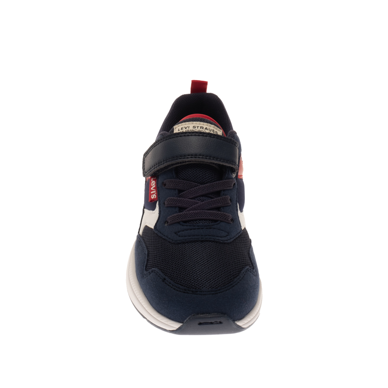 Παιδικό αθλητικό παπούτσι Levi’s σε μπλε χρώμα. Με υφασμάτινη επένδυση εσωτερικά και ελαφριά αντιολισθητική σόλα. Διαθέτει ελαστικά κορδόνια και velcro για εύκολη εφαρμογή.
