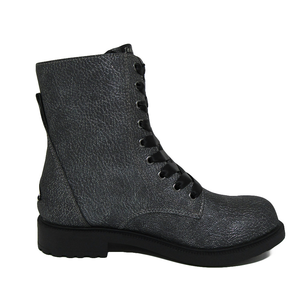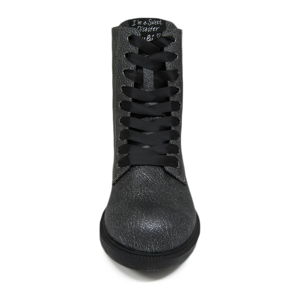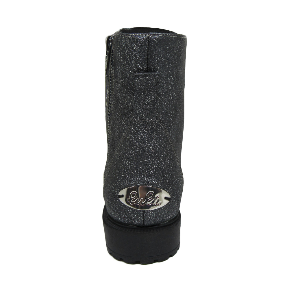Παιδικό αρβυλάκι Lulu σε ασημί χρώμα με μαύρες λεπτομέρειες. Διαθέτει υφασμάτινη επένδυση εσωτερικά και φερμουάρ στο πλάι για εύκολη εφαρμογή.
