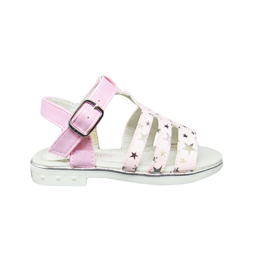 Παιδικό πέδιλο Lulu σε ροζ χρώμα με ασημί αστεράκια. Διαθέτει κούμπωμα στο πλάι για εύκολη εφαρμογή.