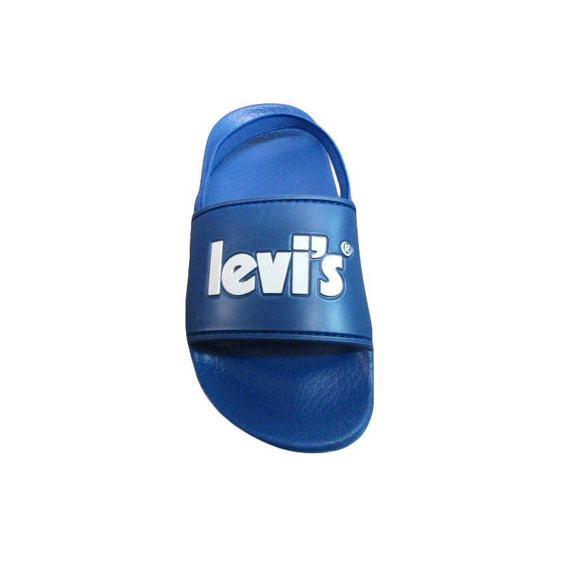 Παιδική σαγιονάρα Levi’s σε μπλε χρώμα με το λογότυπο της εταιρίας στο μπροστινό μέρος. Διαθέτει slip-on εφαρμογή και λάστιχο για να κρατάει σταθερό το πόδι και χαρίζει άνετο περπάτημα με το ανατομικό της σχήμα.
