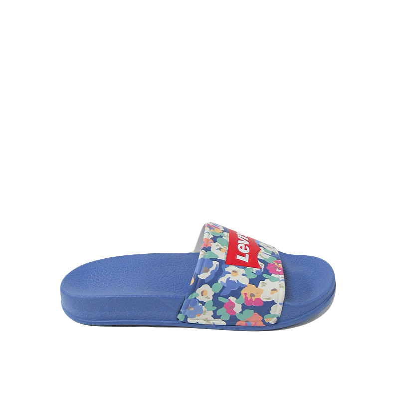 Παιδική σαγιονάρα Levi’s σε μπλε χρώμα με floral λεπτομέρειες και εκτυπωμένο το λογότυπο της εταιρίας στο μπροστινό μέρος. Διαθέτει slip-on εφαρμογή και χαρίζει άνετο περπάτημα με το ανατομικό της σχήμα.