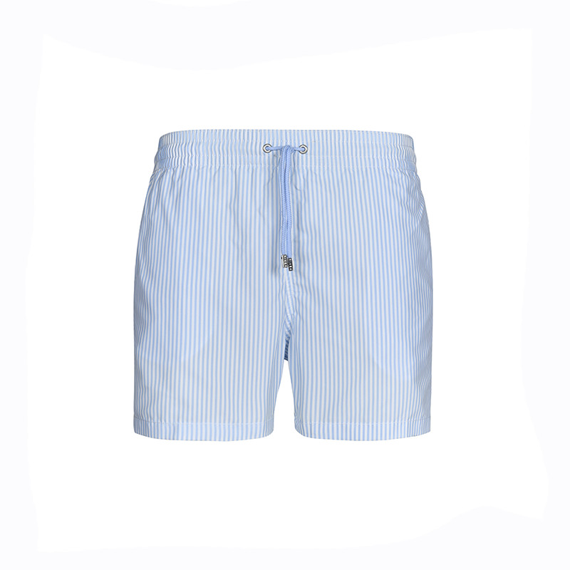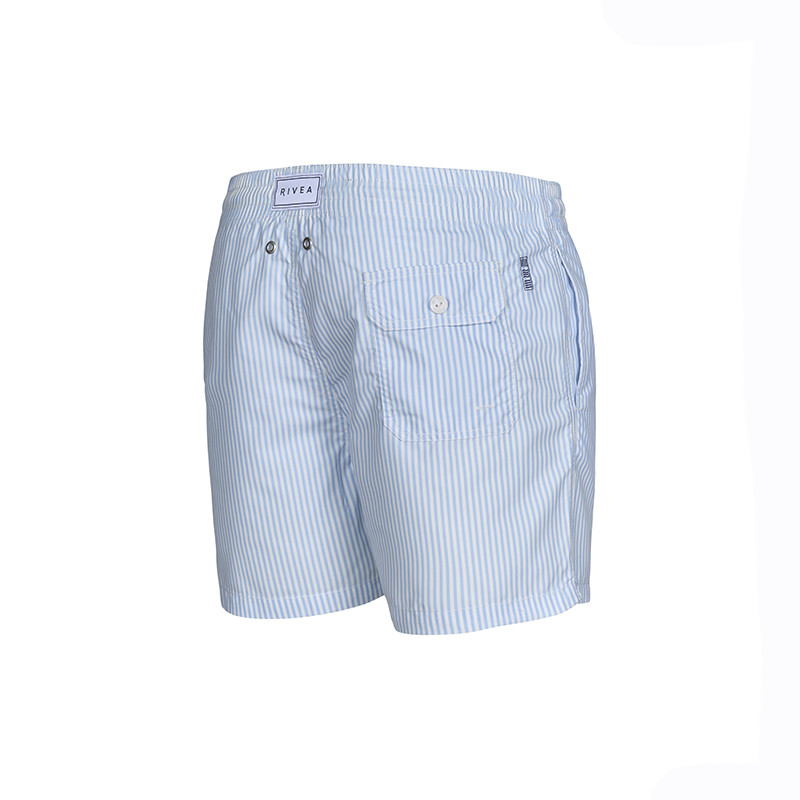 Ανδρικό μαγιό Rivea με γαλάζιο ριγέ σχέδιο και το λογότυπο της εταιρίας στο πίσω μέρος. Κατασκευασμένο από ελαφρύ και γρήγορο στο στέγνωμα ύφασμα, εξασφαλίζει άνετη εφαρμογή όλη μέρα. Η ελαστική μέση με ρυθμιζόμενο κορδόνι προσφέρει τέλεια προσαρμογή.