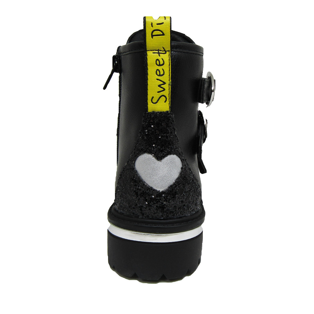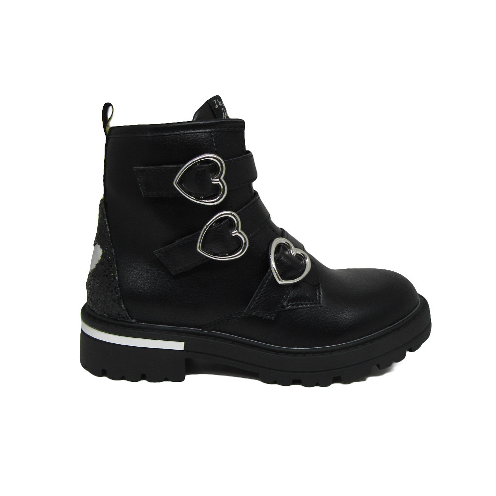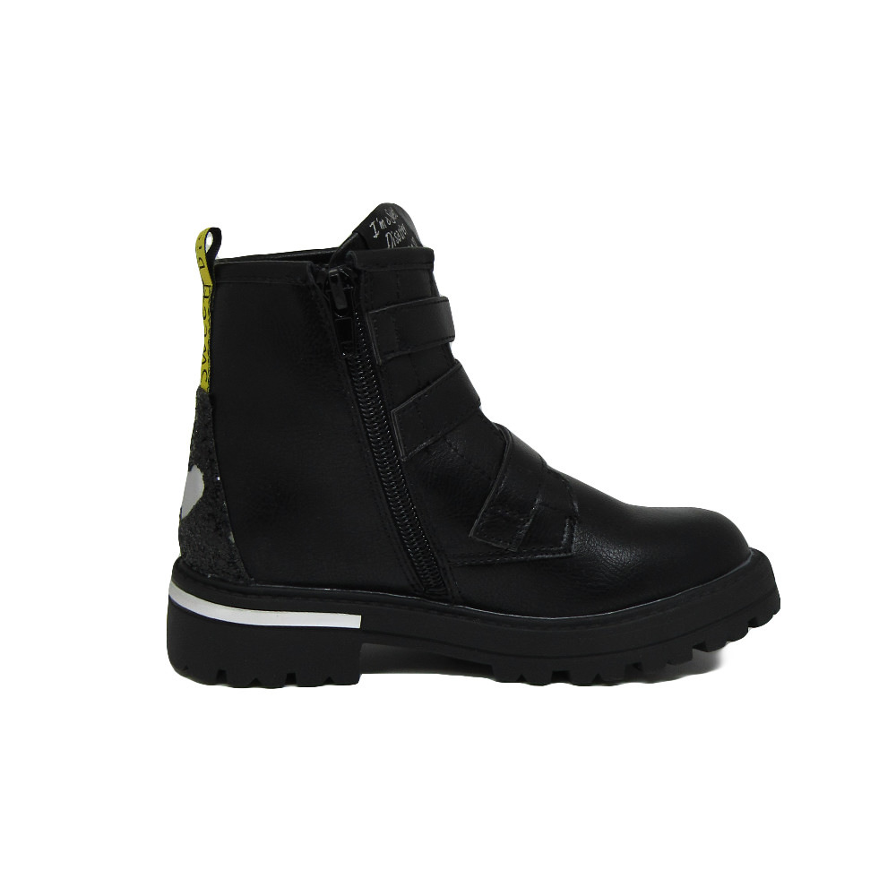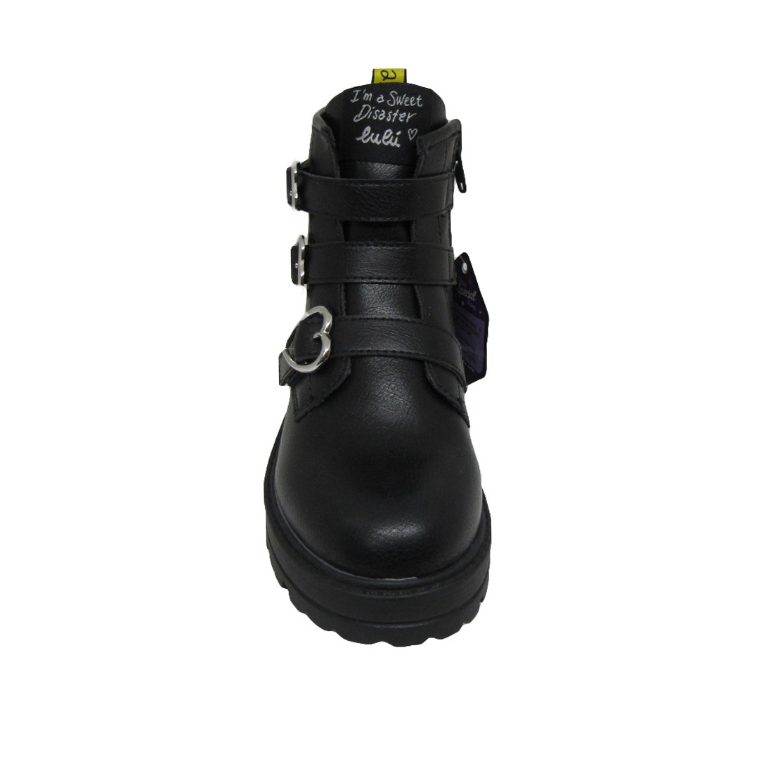 Παιδικό μποτάκι Lulu σε μαύρο χρώμα με ασημί λεπτομέρειες και το λογότυπο της εταιρίας στο μπροστινό μέρος. Διαθέτει φερμουάρ στο πλάι για εύκολη εφαρμογή και αντιολισθητική σόλα.