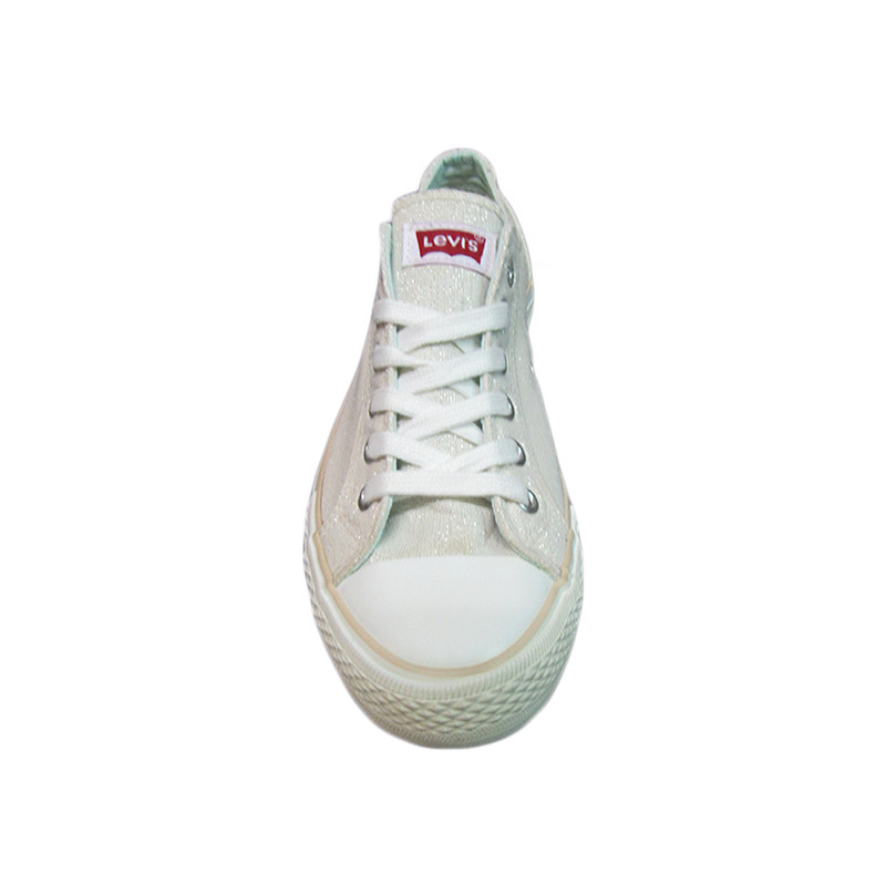 Παιδικό πάνινο παπούτσι Levi’s σε λευκό χρώμα με το λογότυπο της εταιρίας. Διαθέτει υφασμάτινη επένδυση εσωτερικά και λευκά υφασμάτινα κορδόνια.