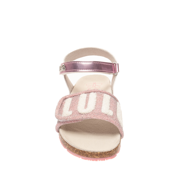 Παιδικό πέδιλο Lulu σε ροζ χρώμα με το λογότυπο της εταιρίας στο μπροστινό μέρος. Διαθέτει δύο velcro για εύκολη εφαρμογή.